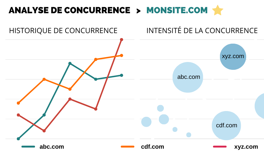 Êtes-vous sûr de savoir quels sont vos concurrents sur Google ? Pour améliorer la visibilité de votre site, il est essentiel d'analyser votre environnement concurrentiel et de détecter les stratégies gagnantes de vos concurrents en référencement naturel. Avec Ranxplorer, cette étape est simple et immédiate. Nous vous indiquons clairement quels sont les sites qui se positionnent sur votre univers de mots clés. Vous obtenez ainsi une cartographie précise de vos concurrents dans les résultats de recherche de Google.